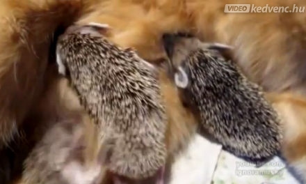 A cicamamát nem érdekli, hogy örökbefogadott picinyei tüskések vannak. Árvák, így minden probléma nélkül gondozásba veszi őket.