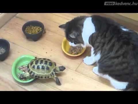Ez a teknős biztos sok Tini Nindzsa képregényt olvasott, mert nagyon elszánt támadást indít a háztartás macska lakói ellen.