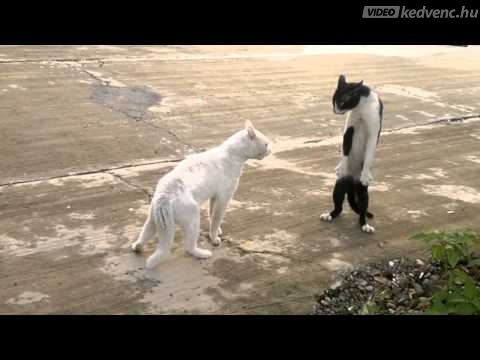 Ilyet még nem láttunk! Két lábon állva balhézik a cicus!