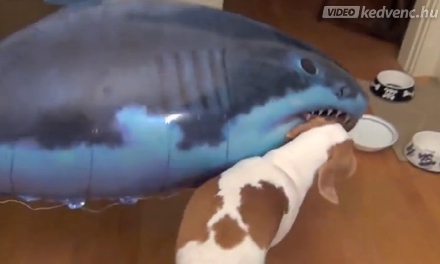 Ki az, aki ne rémülne meg egy hatalmas cápától? Egy kutyus számára azonban ő is csak egy betolakodó, akinek nincs helye a házban. Azért a..