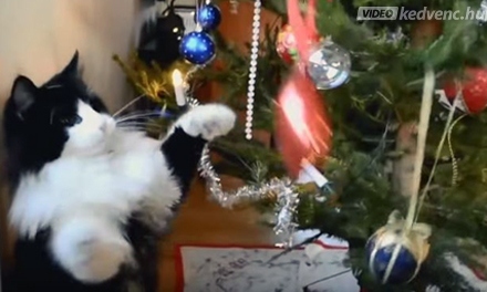 A macskák általában nagyon élvezik a karácsonyt, bár a karácsonyfának ez nem mindig tesz jót.