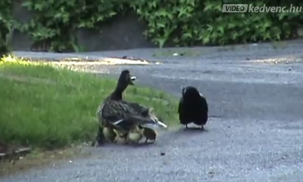El a csőrökkel a kicsinyeimtől! - szinte hallani, ahogy kiabálja a kacsamama, aki hősiesen védi csemetéit a varjúk szemtelen, pimasz..