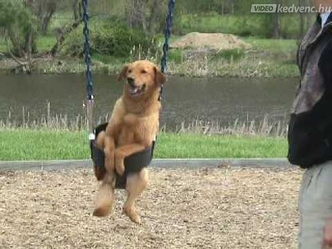 Nehéz eldönteni, hogy a család vagy a kutya élvezi jobban a hintázást.