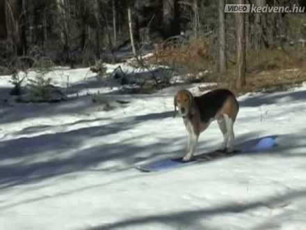 Ez a kutya snowboardosnak született. Nem igazán zavartatja magát, könnyed mozdulatokkal egyensúlyozik a deszkán. Csak a fenyőfákkal gyűlik..