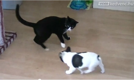 Tréfa? Párbaj kutya és cica között!