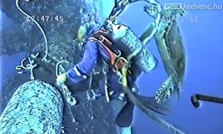 Lenyűgöző víz alatt felvételek, egy magányos teknősről és a búvárról.